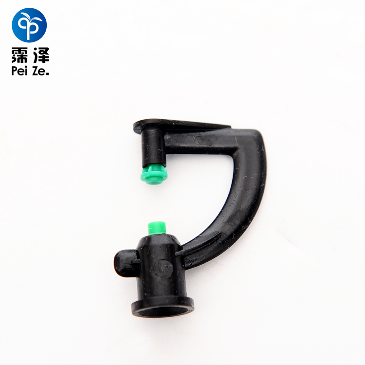 Arc-shaped reflection atomization micro nozzle is also called reflection atomization micro nozzle. This micro nozzle is of a simple structure and low cost. Its water yield is moderate (40L/h). Its sprinkling diameter is 1.5-2.0m (subject to the micro nozzle height). The working pressure is low. The working pressure is 0.2MPa in normal cases. Large power equipment is not required. The water yield is stable and irrigation is even. It is usually used for irrigation in greenhouses.